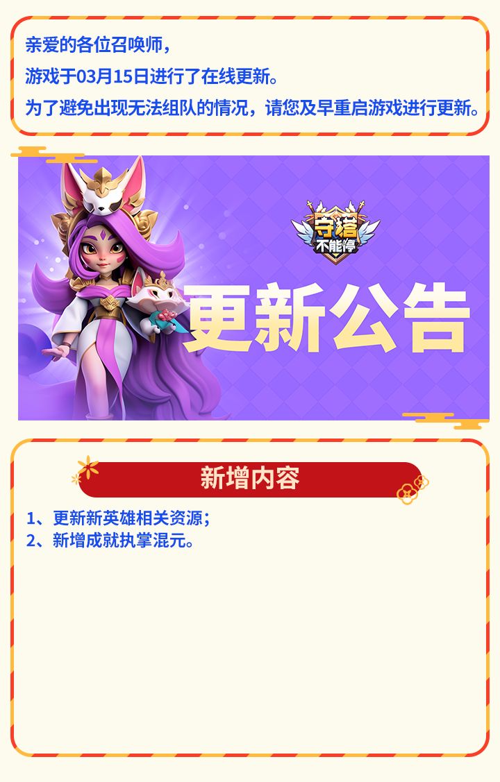 守塔不能停 更新内容公告