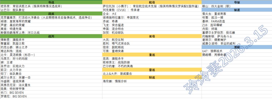 战舰少女R:舰娘双技能选择攻略(2026.3.15更新)