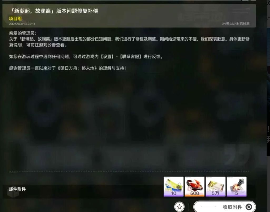《终末地》惊现无限刷玉BUG!官方紧急修复并发放500玉补偿