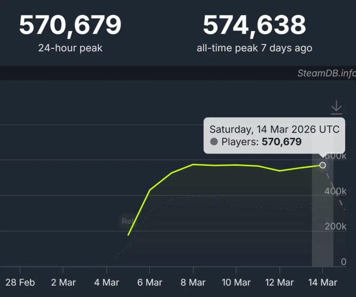 实在太夸张了家人们! 近日 杀戮尖塔2彻底火出圈了,连续一周在线人数稳稳保持50万以上,热度高到吓人。