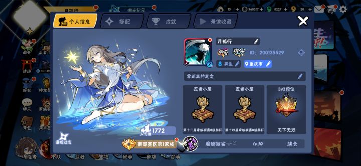 这一届和魔女的合并 造就了现在的魔娜丽鲨 族战全国八强 深渊全国第三 这个成绩其实怎么说呢 也算说得过去吧 还是要感谢愿意一直跟着我 支持我 无论我做任何决定都坚定拥护我的每一个人吧 虽然大家因为忍3相识 也许有很多这辈子都不会见面的人 但大家真的都很好 所以我告诉自己 没关系 胜败乃兵家常事 大侠请重新来过 谢谢大家