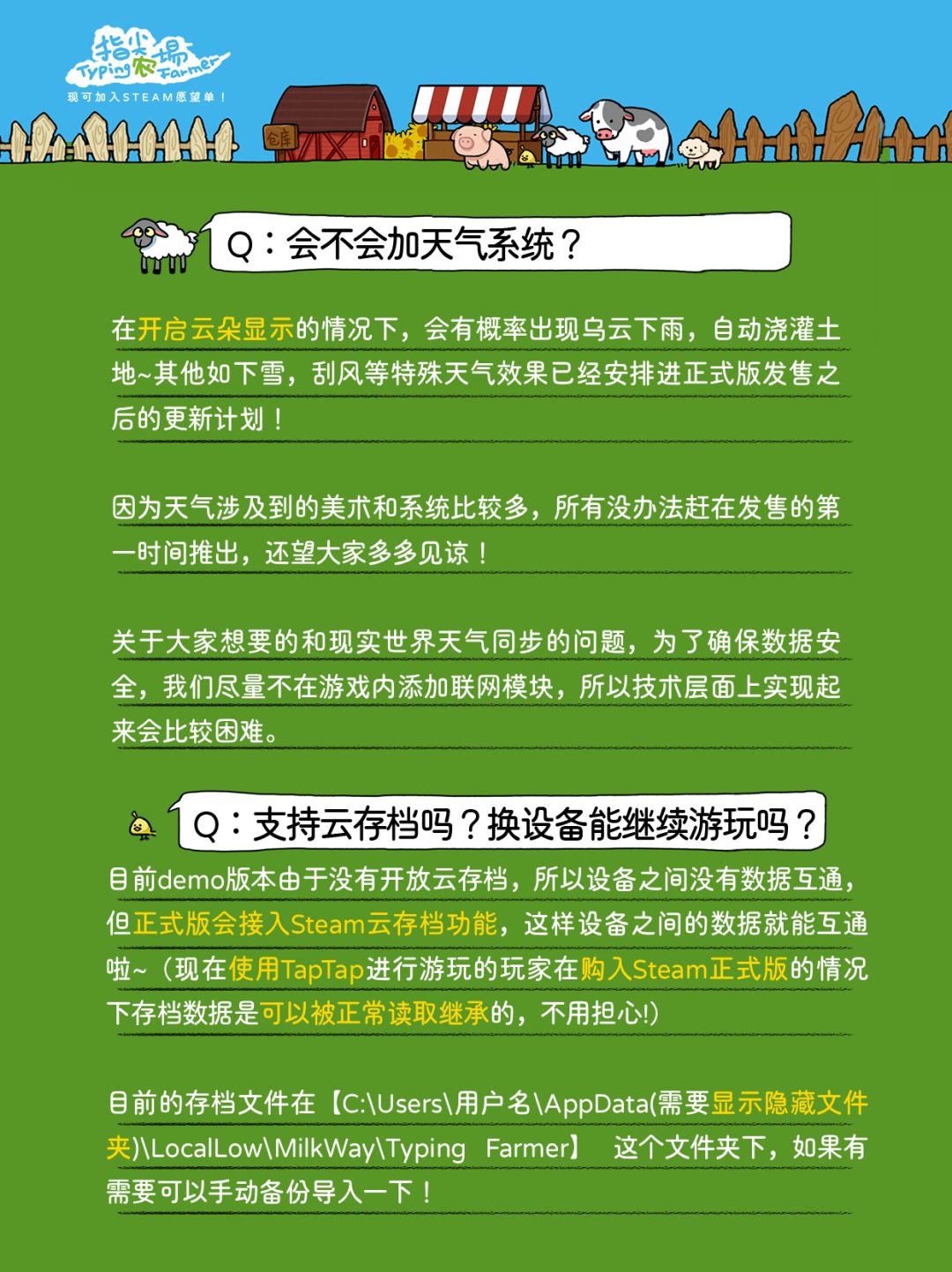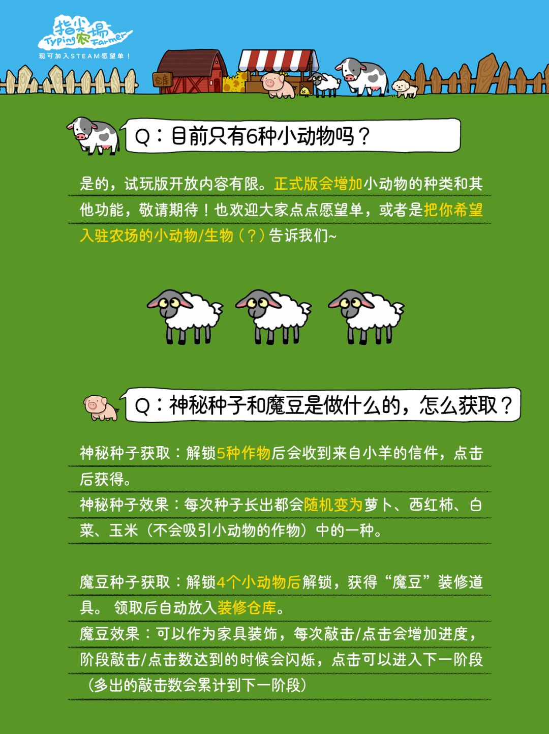 我们在评论区和玩家群里收集了一些常见的问题,希望能对新来的农场主们有帮助!!