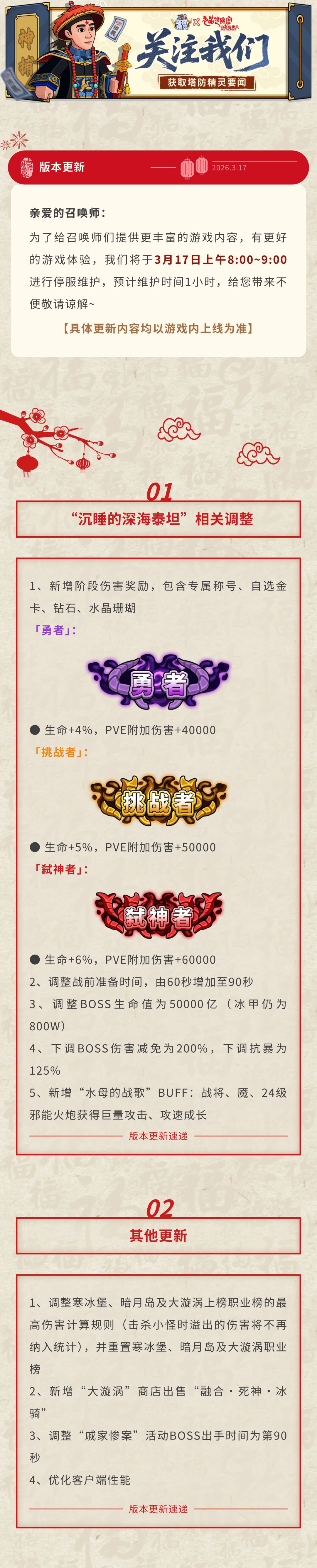 【版本更新】“沉睡的深海泰坦”相关调整上线!
