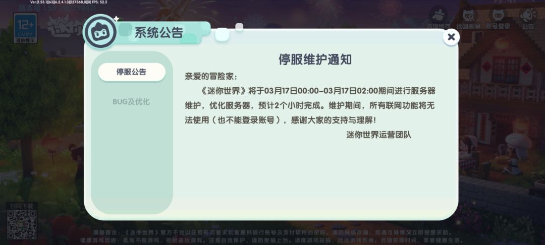 迷你世界 停服维护