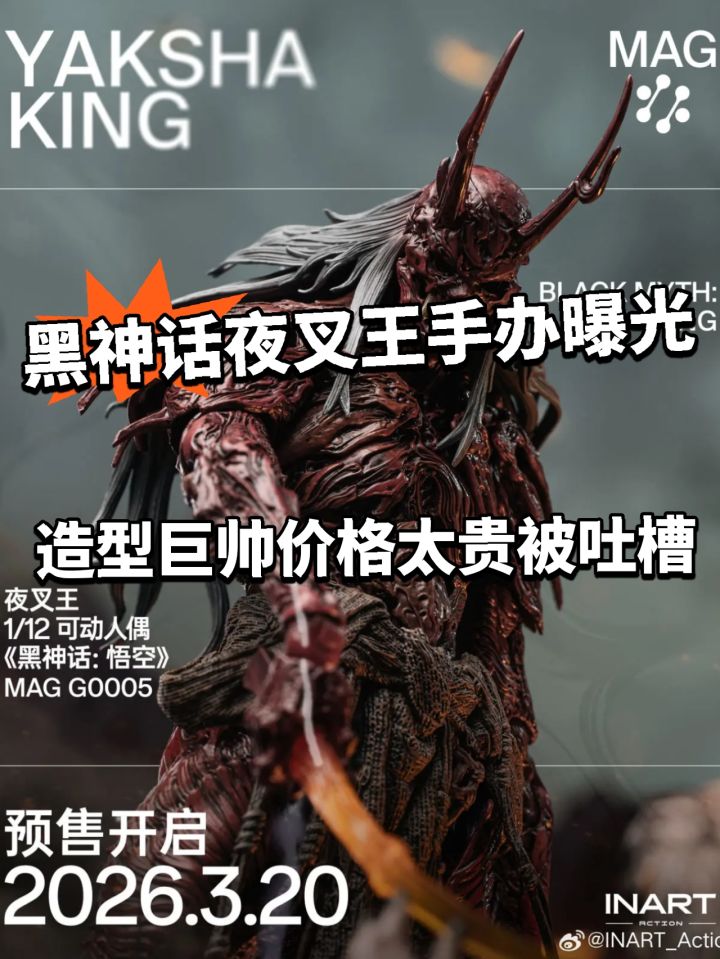 大的来了家人们!近日INART联动黑神话:悟空推出的夜叉王1/12可动人偶,官宣3月20日正式开启预售,消息一出立刻在社区引发热议。