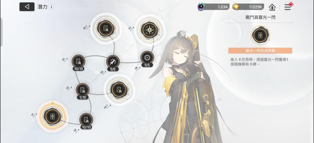 在角色卡牌界面查看灵光一闪