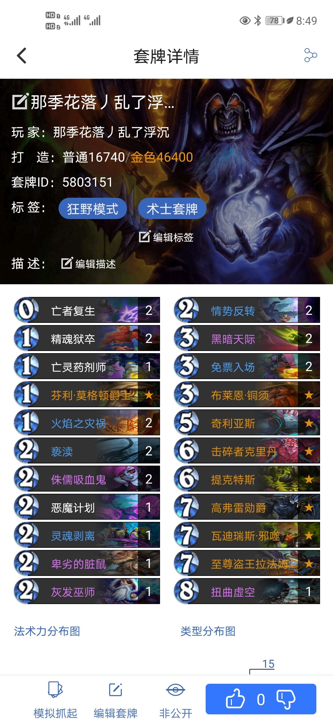前期以法术过度,用低费恶魔控制方面,用三费法术过到688,腐蚀后开始快乐(✪▽✪),在更后期来说,后拉法姆来提高质量