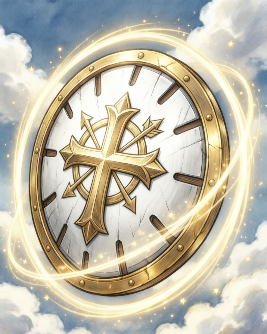 背景故事:此盾以古神遗铁锻铸,承载初代神圣守护者的残魂,是上古守护之战中留存至今的圣器。相传后世无一人能承载其辉光,直至雅典娜握住其柄,从此器不离手,为不灭之握。