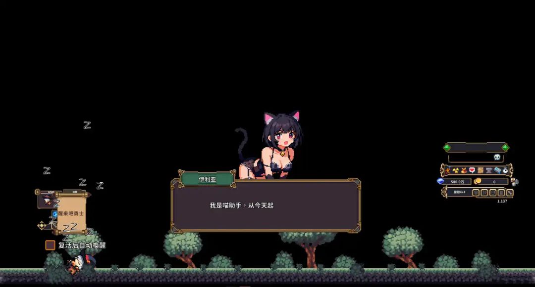游戏本质上是款桌面挂机游戏,因此游戏场景很简洁,放在桌面上也不会影响其他工作的进行,全自动战斗和刷怪,进入游戏便开刷,怪物会随机掉落各种装备,队中的角色们也会不断获得经验值,此外也可以自动刷取副本BOSS来进行不断进阶