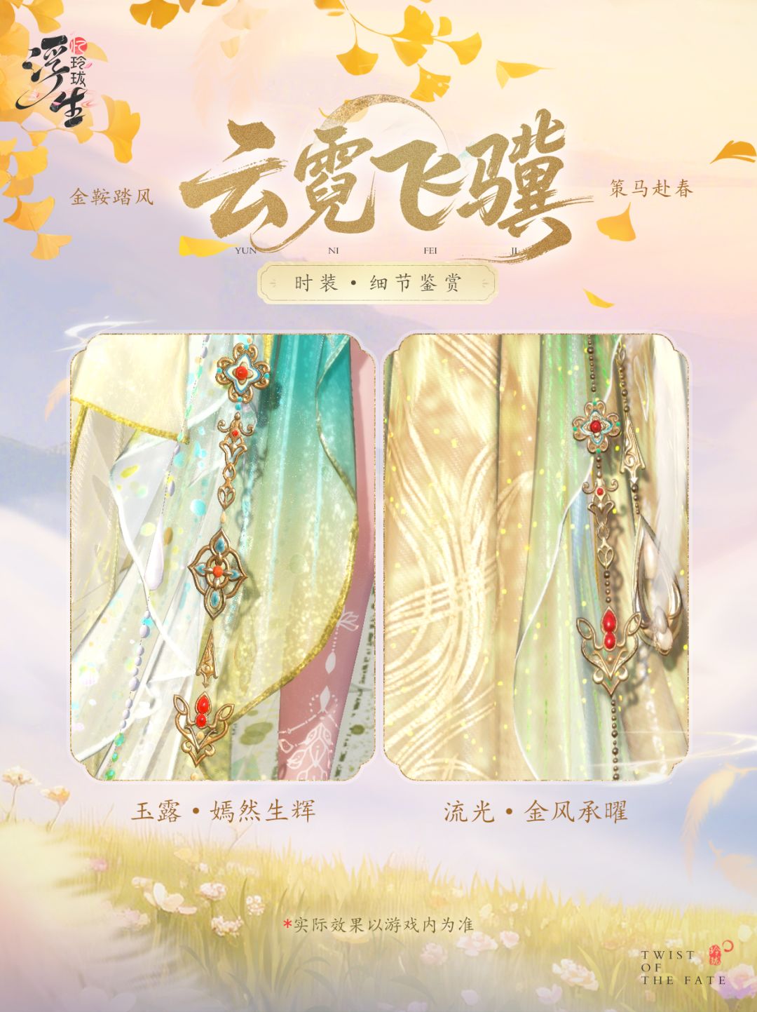 《浮生忆玲珑》全新绮罗锦衣活动3月18日即将开启,参与本期活动获得全新绮罗时装「云霓飞骥」、橙品时装「寻梦拾音」及超多精美配饰、丰厚道具奖励。