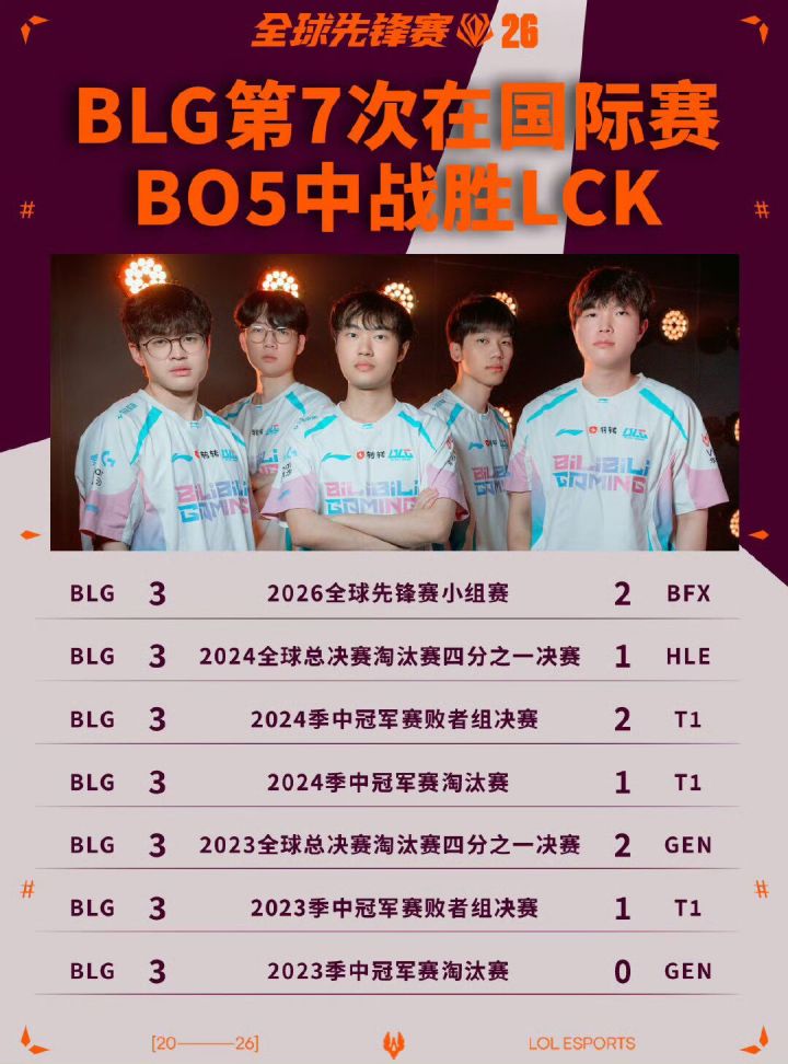 昨天,在2026全球先锋赛的BO5对决中,BLG电子竞技俱乐部战胜LCK赛区的BFX战队,拿下本次赛事的关键胜利。