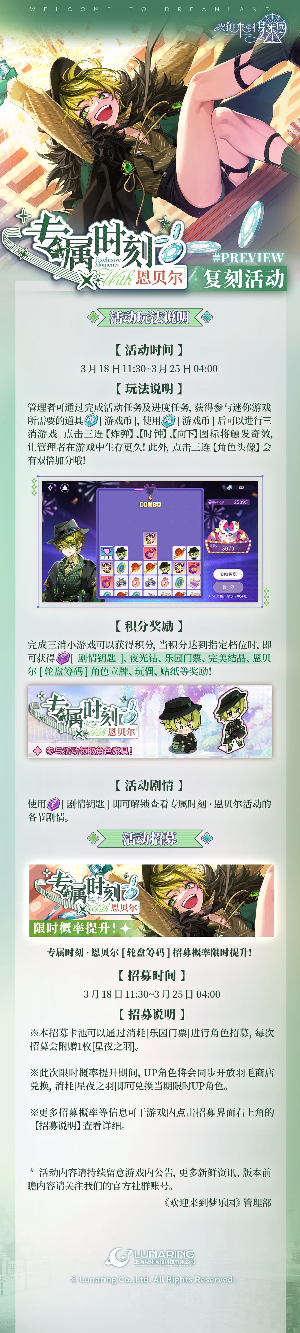 ✨全新复刻活动「专属时刻·恩贝尔」3月18日开启!