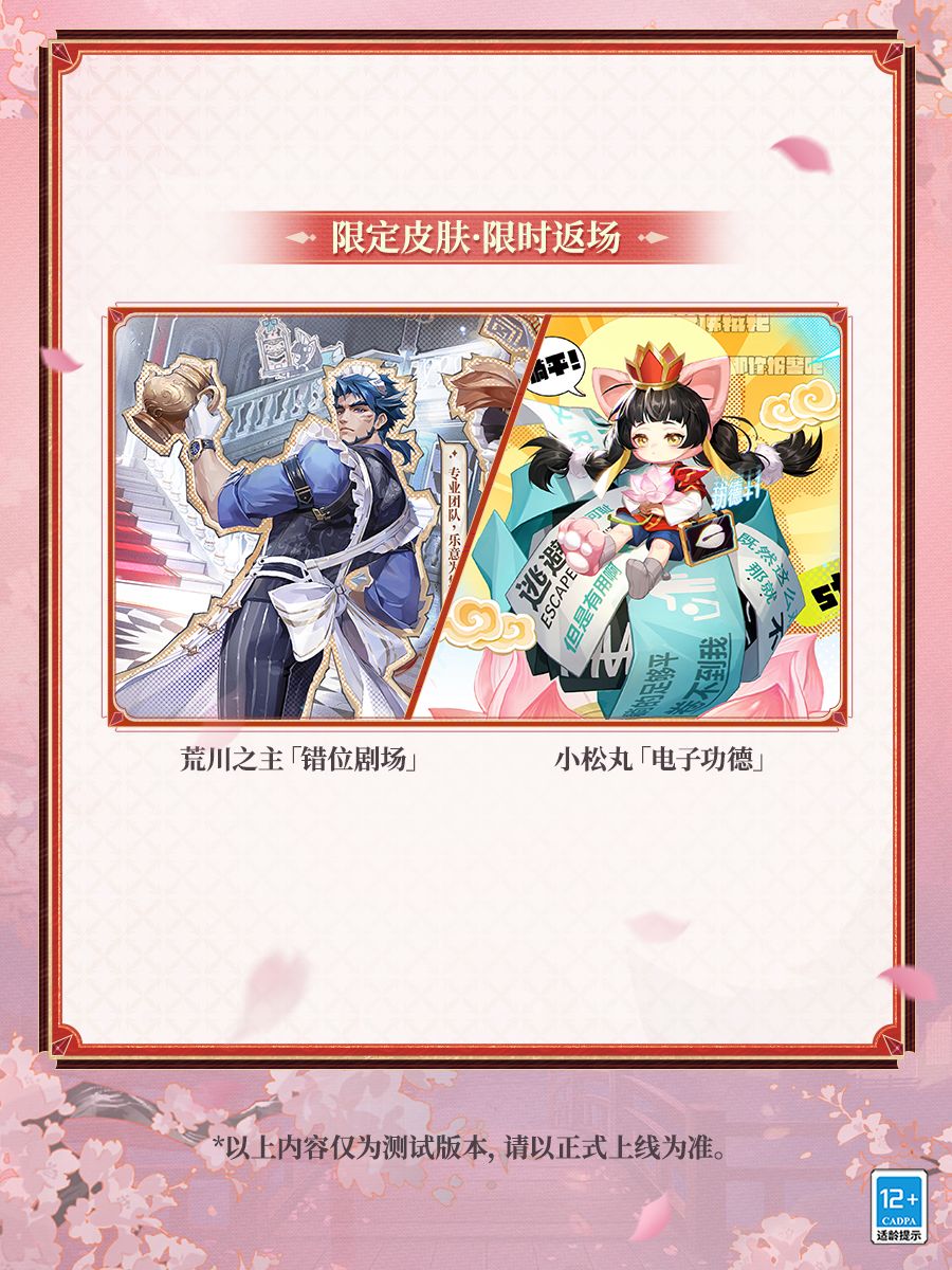 全新式神、赛季皮肤、赏金特典皮肤同步上线,全新愚乐谐行系列限定皮肤上新!登录免费得吉愿达摩券*5、皮肤券*9、幸运骰*30……超多惊喜好礼等各位大人前来领取,快来看看吧!