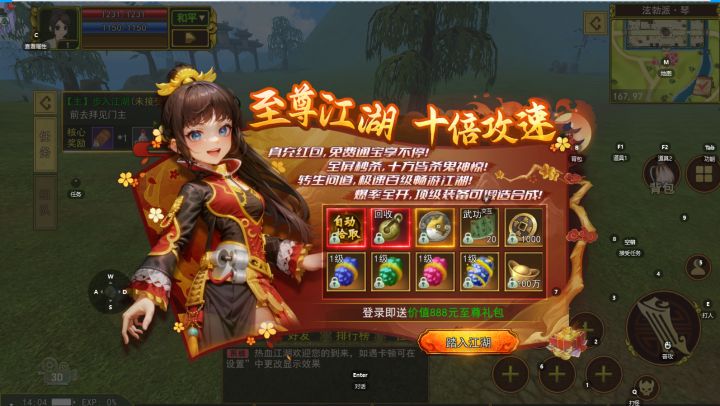 热江高爆版作为正版授权的经典武侠MMORPG,它打破传统肝氪内卷的魔咒,主打500% 爆率没有vip压制,不仅如此上线即领真充红包,完成日常悬赏红包任务还能额外获取,所有真充额度都计入首充累充福利,零氪玩家不用花一分钱就能解锁首充礼包等,打怪就能掉非绑元宝和装备,跟着任务走快速解锁交易,所有道具走官方拍卖行实现变现
