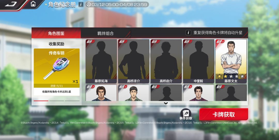 通过完成纪念册中的指定任务,将会获得随机角色卡牌,从那位在送豆腐路上练就神技的“车神”,到冷静完美的“白色彗星”,都将悉数登场!