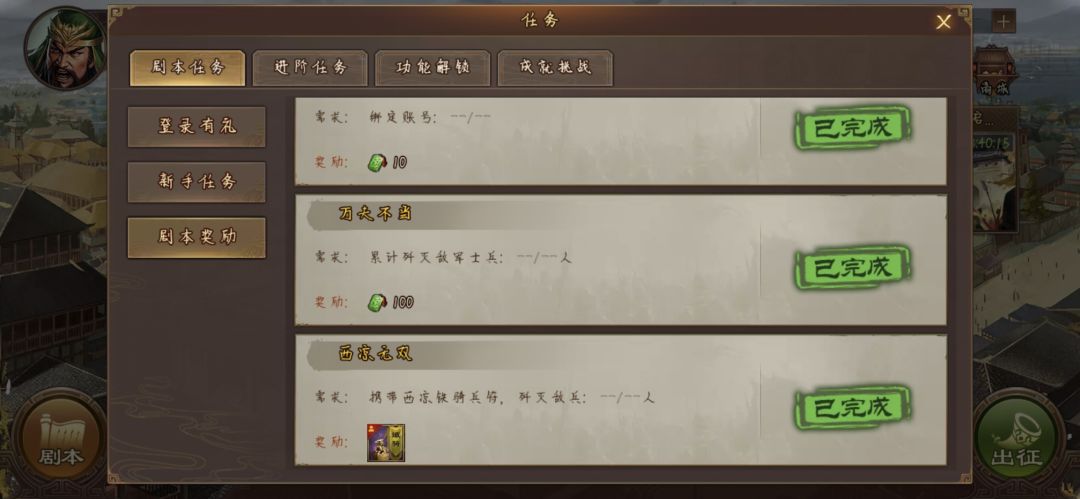 5-2不能偷鸡获胜,5-3可以,所以我们需要打4-4打大将关卡,4-4就需要一点配置了(稍微有点难度),免费开启的西凉特种兵,在任务里面有一个新手最好的福利,就是下图,可以直接西凉满训