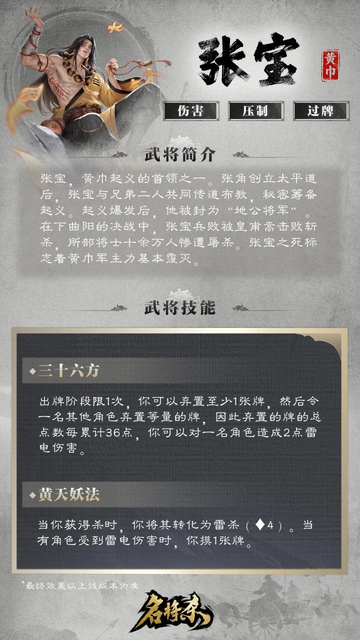 《名将杀》新武将张梁、张宝爆料!