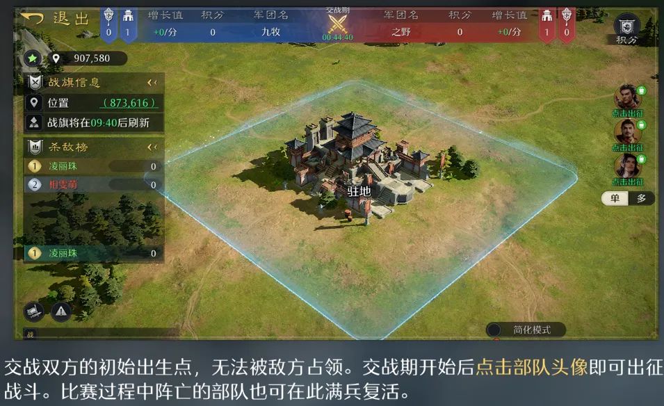 旗帜:在地图中央会刷新旗帜,拿到后就可以往驻地移动,送回驻地可以获得大量积分。一旦在途中被击杀则旗帜会掉落在地上,此时需要周围的部队重新拾取。