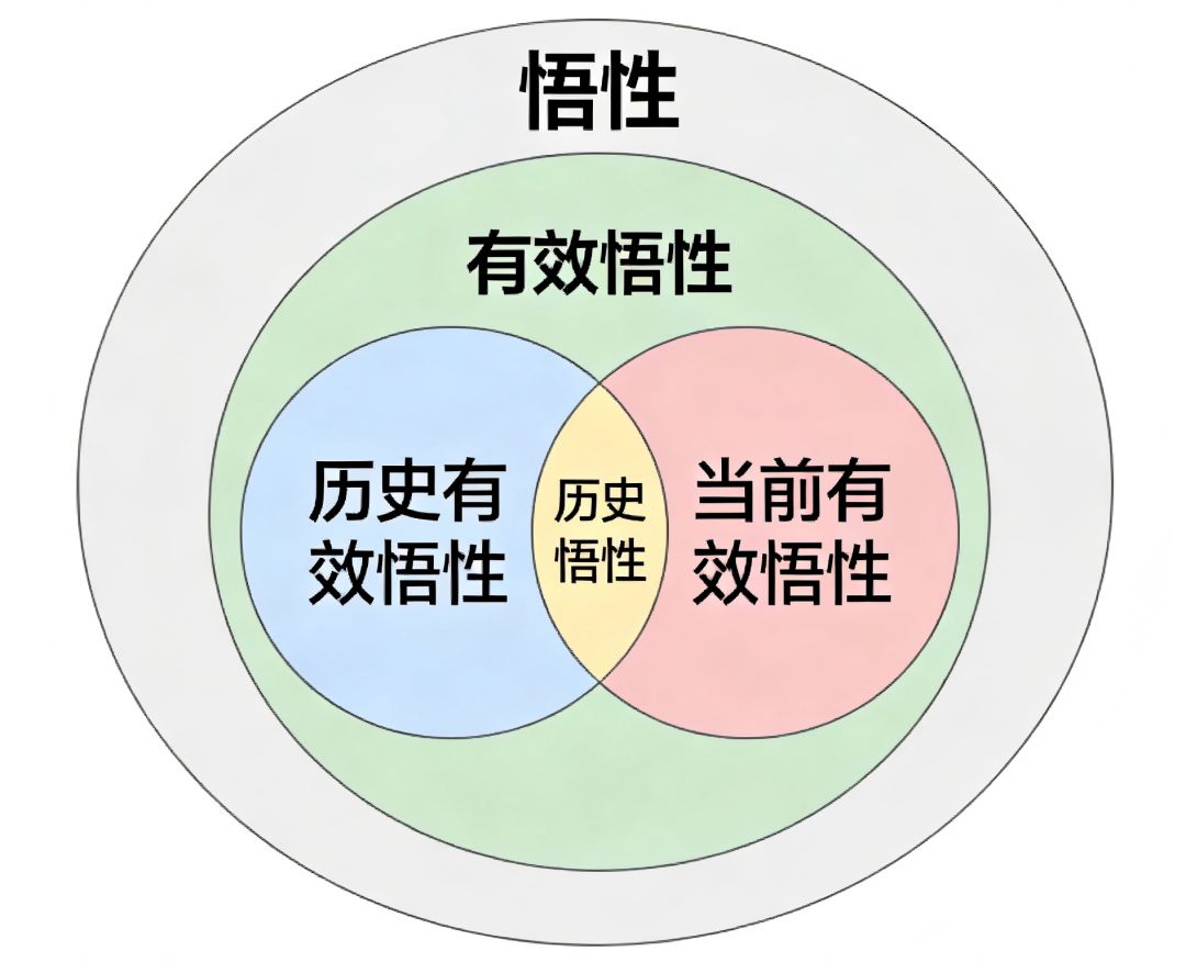 首先界定在悟性这个概念中范围最大的应该就是有效悟性了,其中分为当前有效悟性和历史有效悟性;