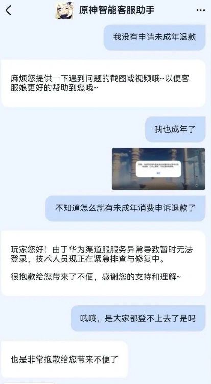 家人们,昨天华为渠道服玩家集体懵圈——《原神》《第五人格》《蛋仔派对》等一堆游戏,突然弹出“未成年退款后终止服务”的封禁提示,可大伙明明是成年账号,压根没申请过退款啊!