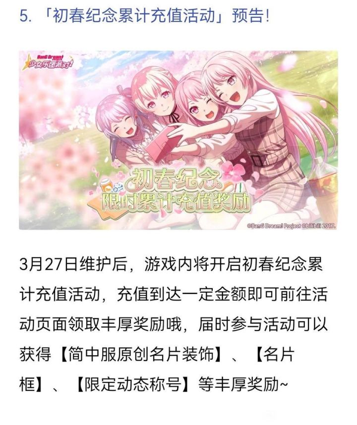 从12月底的元旦累充、1月底宣布的2月新春累充,到3月16日中午宣布的3月27日即将开启的初春累充,半年内连续多次充值活动确实密集。