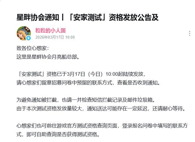 原因和它们宣布在3月17日10点起正式发放「安家测试」资格有关