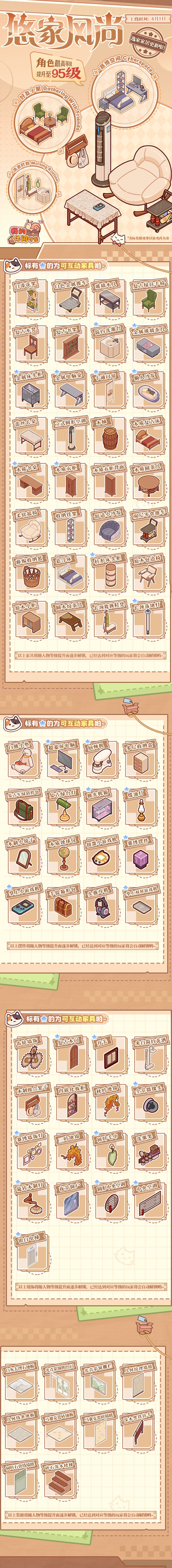 🌱居居小Tips:4月1日停服维护结束后,角色等级上限将提升至95级,新增家具&装修将上架至逸家家居