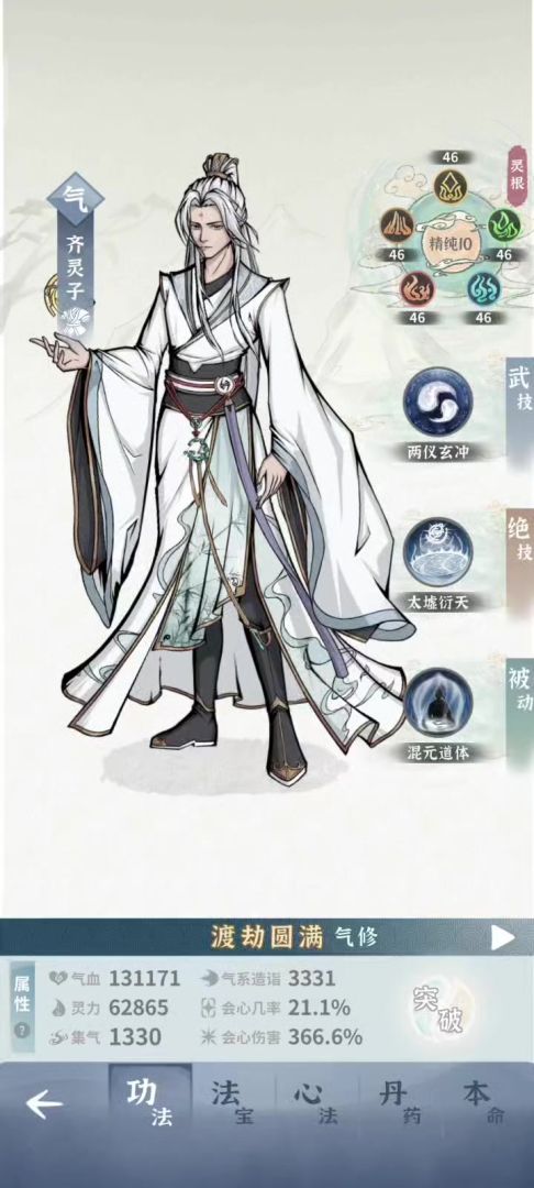 如视频,心法无莲塔的。丹可以说没有,所以境界虽然是圆满但也没差了。装备都是6阶,7的飞舟属性也和6的没啥区别,没有鹤。没有契灵,宠物单仙。这里有一个点,回归的没有青冥戒,首领伤会少11,实际并无影响,因为使用龙心+猿进去后会达成60+30满80首领减伤。忘录面板了补一下图供对照: