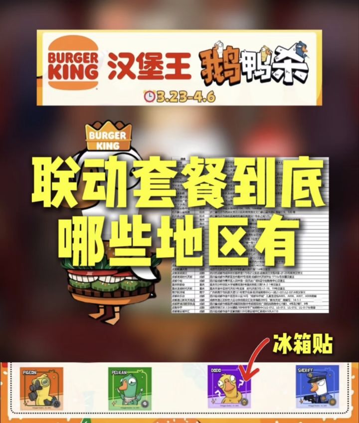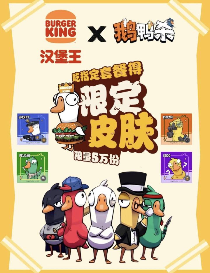 鹅鸭杀玩家集合!!这波直接赢麻了汉堡王联名太懂我们了!到店指定套餐送限定皮肤啦!!!性价比拉满!刚打开外卖软件准备摸鱼点单,直接一个瞳孔地震——汉堡王×鹅鸭杀?这组合是认真的吗!!