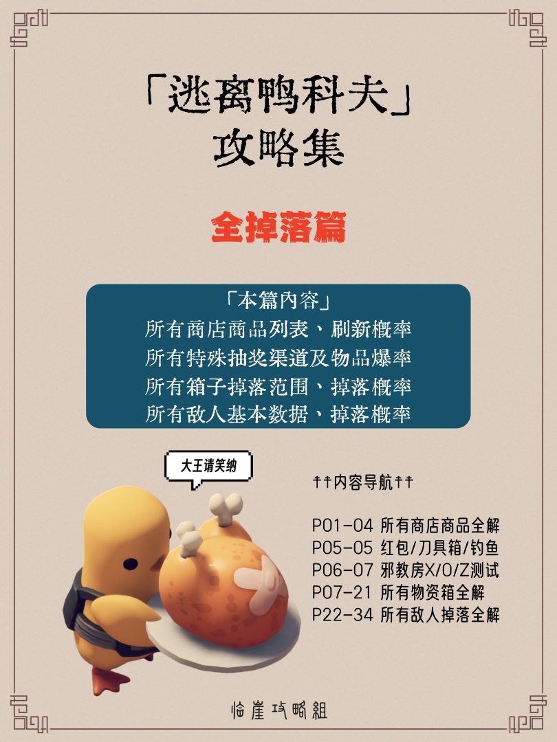 逃离鸭科夫超白金攻略集257页已完成编订。