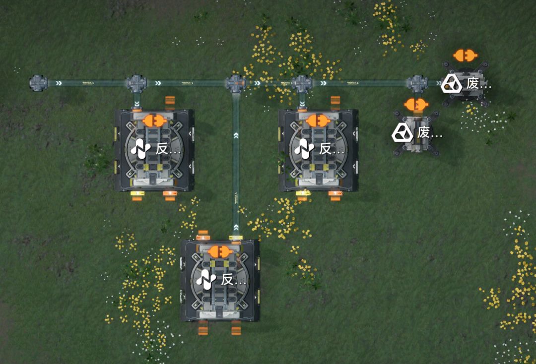 当息壤用作装备产线时,壤晶产生的污水减少,而上方2个反应炉需要的污水下降,流入右侧的污水大于1单位小余2单位;当电池爆仓时,壤晶不在产生污水,2单位污水全部流入右侧,所以右边使用2个处理器可以应对各种情况