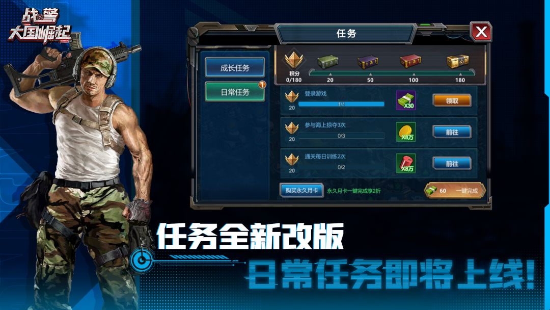 基地任务系统全面优化升级,全新日常任务重磅上线!任务内容精准匹配指挥官当前发展阶段,简单易懂、奖励实用,助力战力稳步提升!
