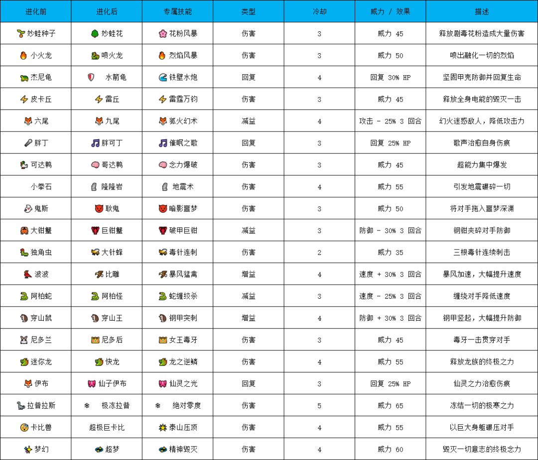 抓个幻兽练练手 普通幻兽进化技能表