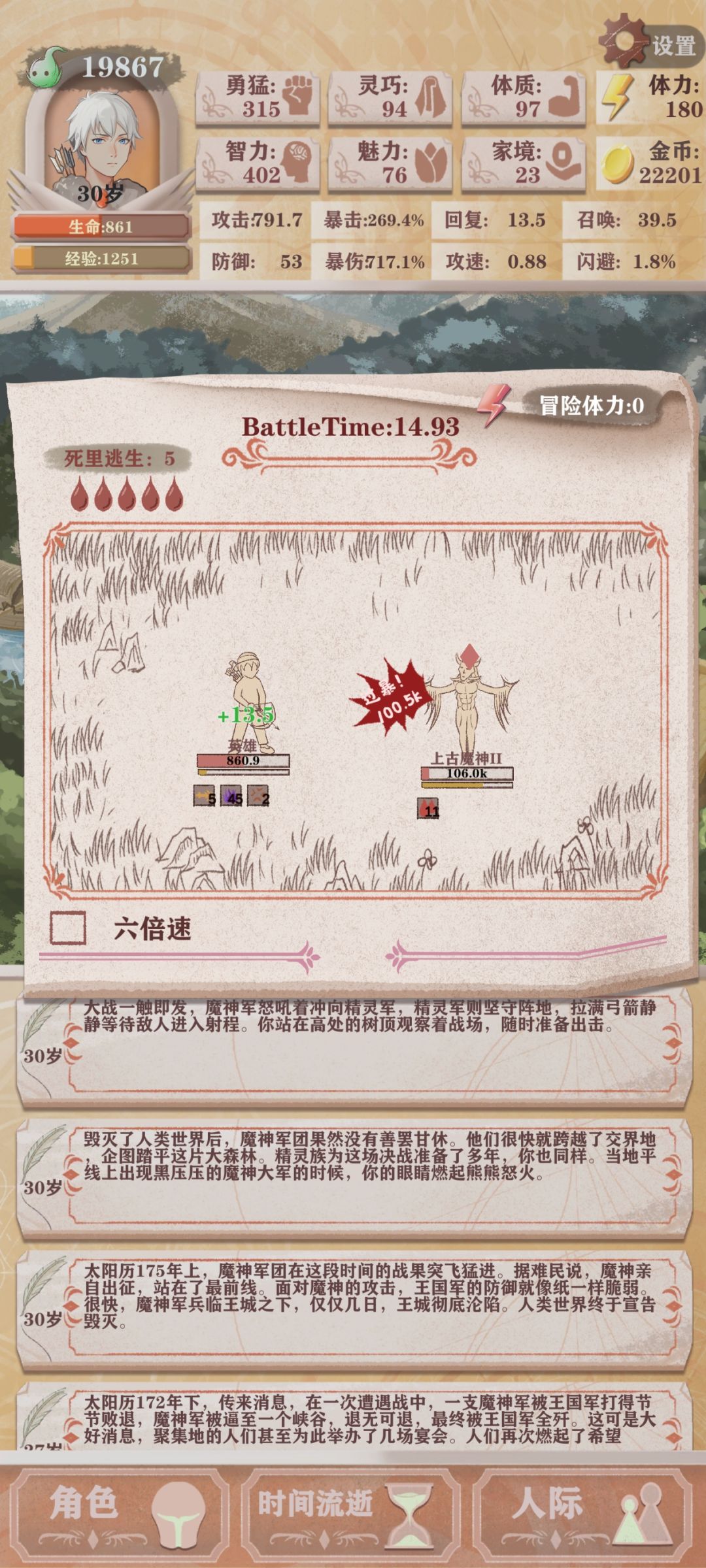 。还有一次倒在了残11,玩了个加体质和魅力的召唤流,被山丘之王打死了。其他关卡都是一次过。然后我分享一些我的心得吧。残10及以下玩啥都行,暴击,主灵巧的回复闪避或者勇猛灵巧对加的爆杀闪避,愈勇召唤或者操偶师召唤,独行侠这个天赋很强可以带上。残10和残11推荐纯闪避流,因为这个时候的暴击流伤害跟不上了,召唤流难过山丘巨人。