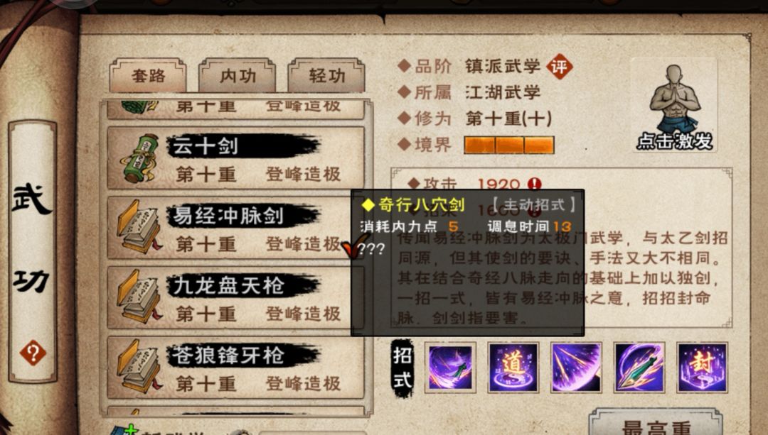 九阳紫霞无相仨镇派内功,完成度最高的是无相,也是目前看上去就可以拿出来用的。其次是紫霞,有个太清罡气还没技能介绍。最后是九阳,似乎只有一个内劲是做好的,169内息196攻击,大概是1:1.16。