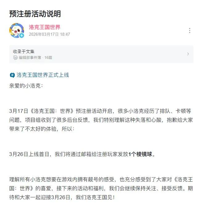 《洛克王国:世界》官方发文致歉!承诺补偿