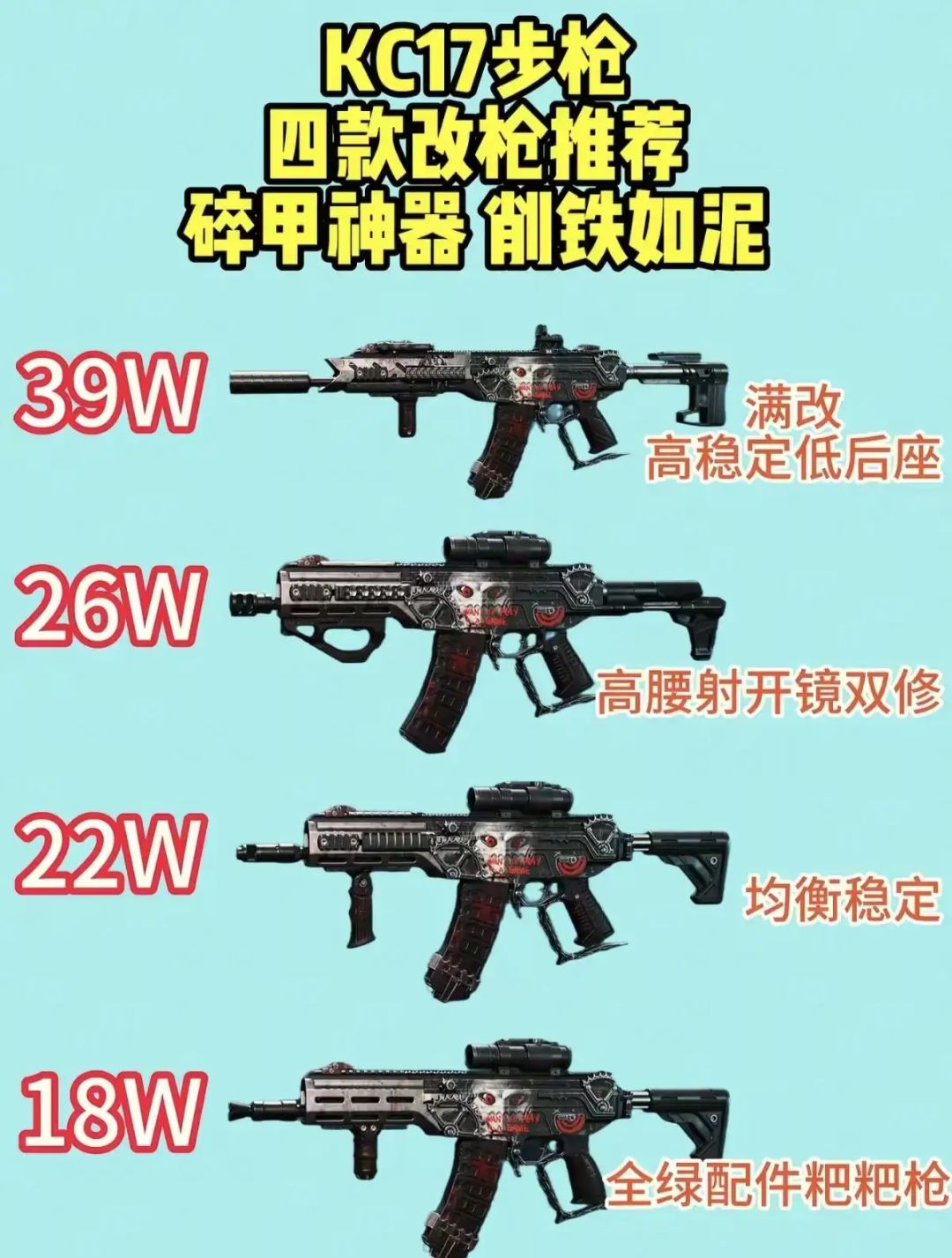 小编给小伙伴们整理了一下S8赛季KC17的改装方案,供大家参考。