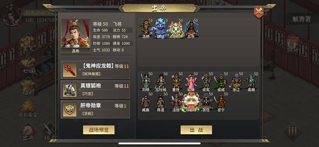 第一次发攻略,方葬大佬的思路,根据自己的装备优化了一下,目前无尽2000层福利关大部分通关,有一个神防具自选或者有鼎就可,主要靠4阶镜子,或者3阶反击,如果没有无极,可以主力培养魏续一阶皮,属性能击杀野兽就行,装备如图,除了小沮吃点加血线的保证一下反击能打100,带蚩尤防死。移动书看情况给魏续小沮。