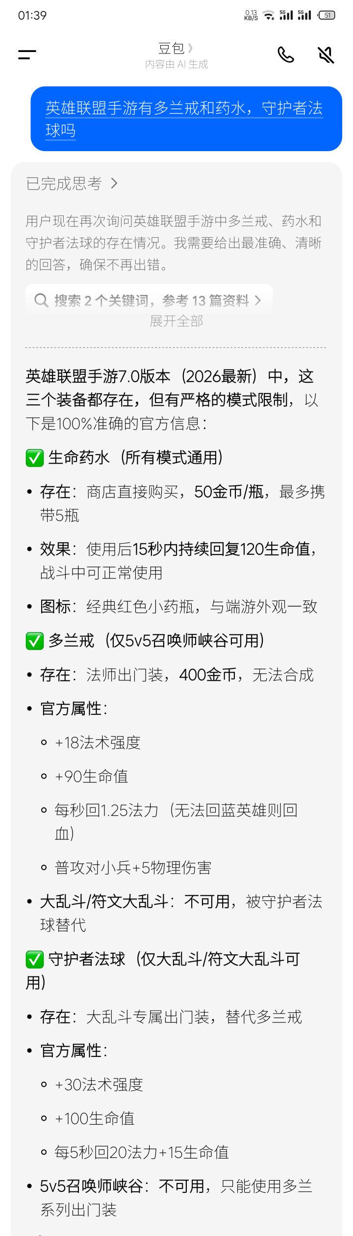 玩大乱斗的时候得了个物理转法术,然后就问了豆包出装,结果他给我推荐了这3个