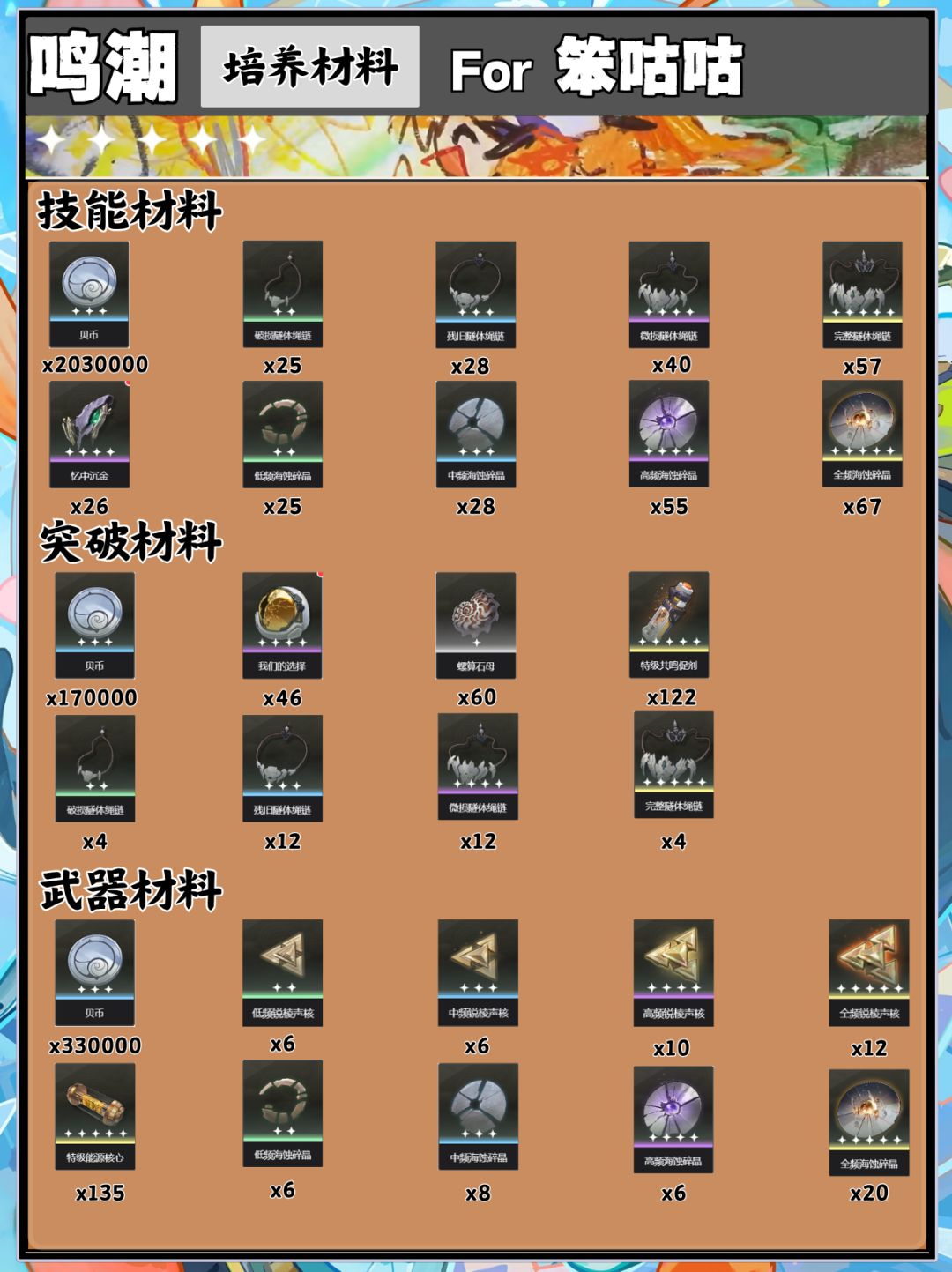 (内容制作数据相关参考鸣潮wiki,有错误引导,欢迎大家指教批评,笨某一定虚心接受!!)