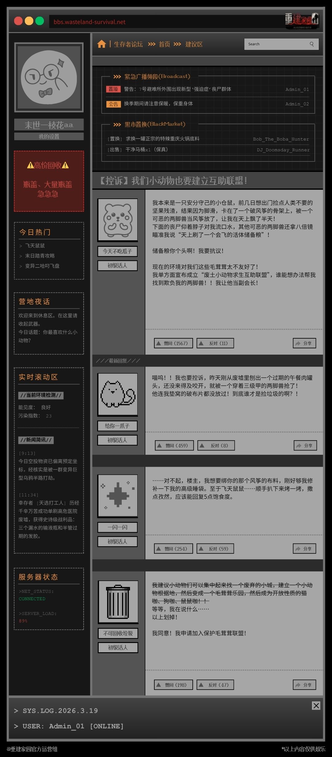 带上【所在区服+游戏名】参与本帖评论,将有3个幸存者获得由飞天鼠鼠送出的奖励一份
