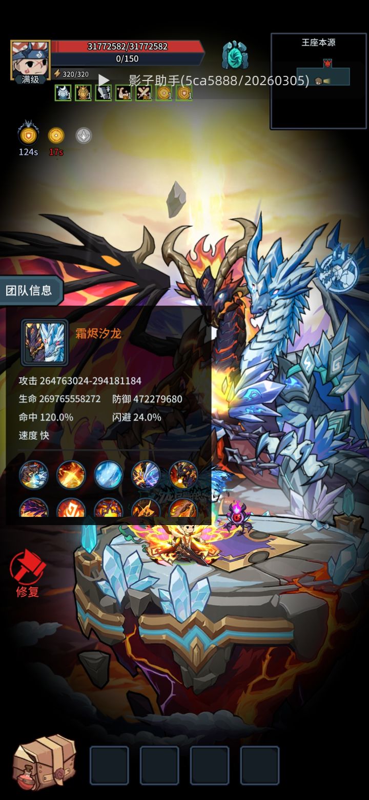 这团本要求很高,没有33龙基本不要去想了,减伤和回血都要求很高,一阶段左边是水属性,右边是火属性注意一下细节。一阶段弄这装备带龙狐狸鲨鱼能打一下。2阶段站不住,回血不够减伤也不够,后期再研究吧!