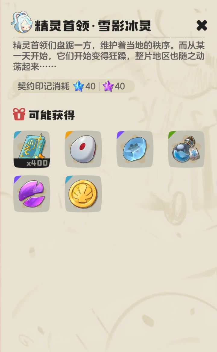 击败后可获得:魔法经验,精灵蛋,冰系灵碎,冰系粉尘,相框残片,洛克贝