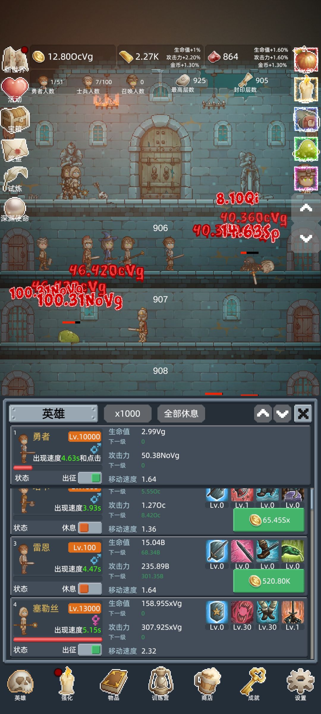 玩了段时间,这游戏还是比较休闲的,一开始就是随便点着玩,像素画风看着很复古,没想到越挂越停不下来。前期试了好几个英雄,最后发现赛勒斯才是真神——移速快得离谱,跑试炼、冲层数效率直接拉满,比其他英雄快太多,前期优先升她准没错,能少走好多弯路。