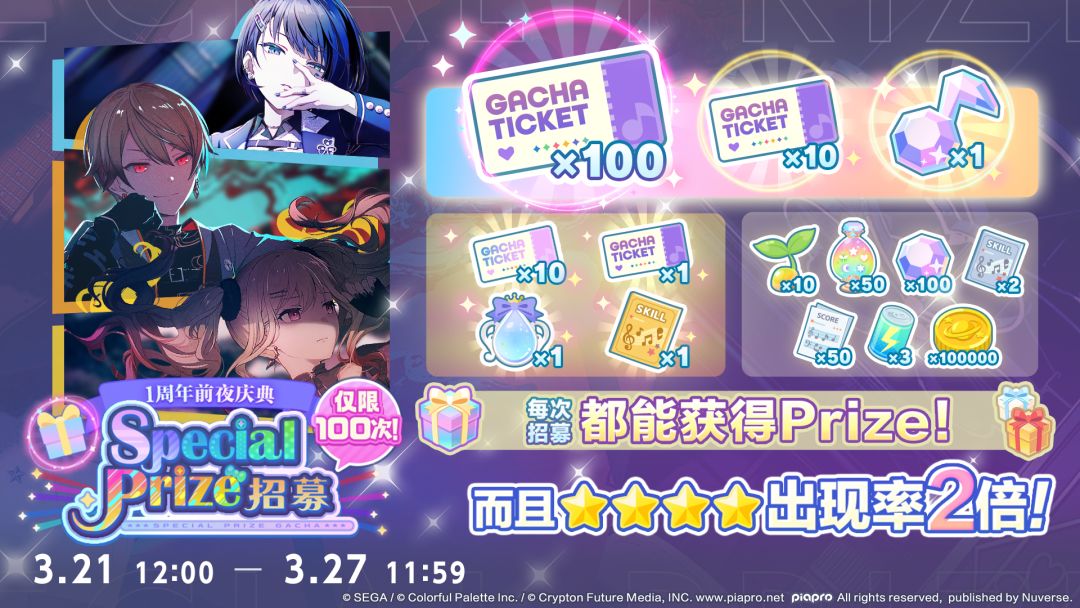 我们将于3/21 12:00起举办「[1周年前夜庆典]Special Prize招募」。