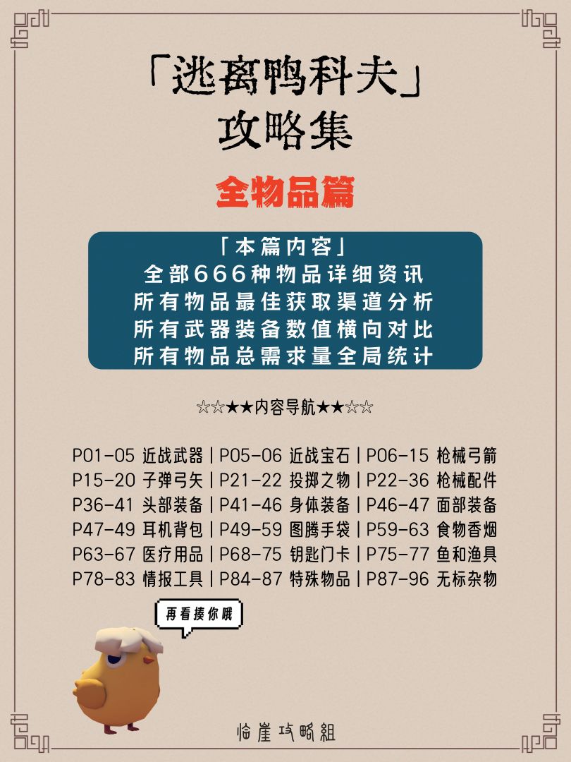 逃离鸭科夫超白金攻略集257页已完成编订。