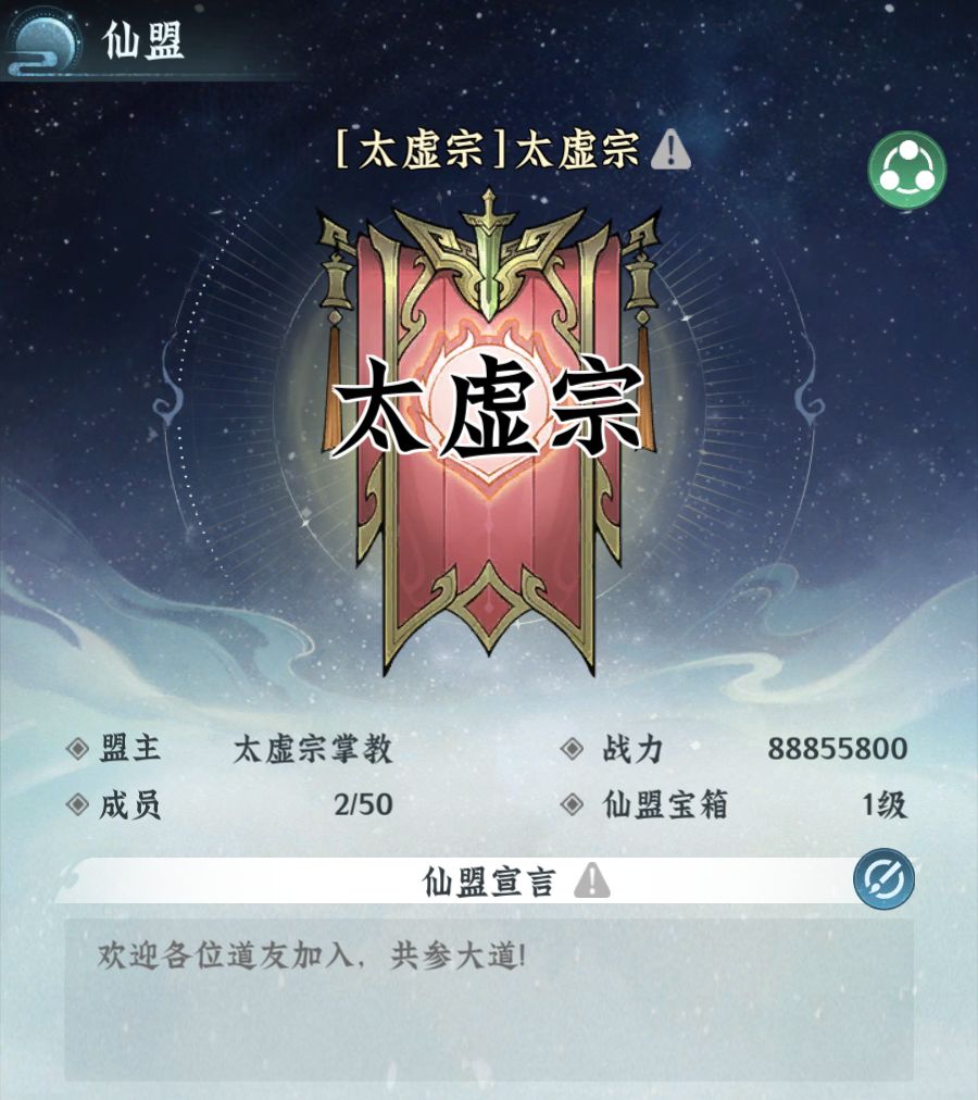 加入仙盟后,掌教师叔在宗内建设建筑或参悟研究时会自动向仙盟发起求助,盟内成员可集体调动太虚之力为其进行帮助,每次帮助都能缩短建设或研究所需的时间,可显著加快宗门发展。