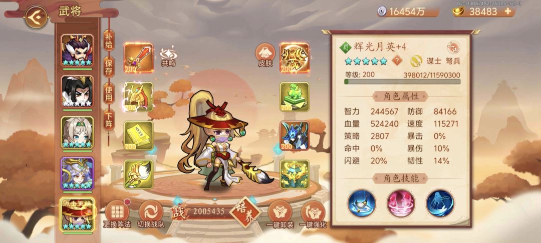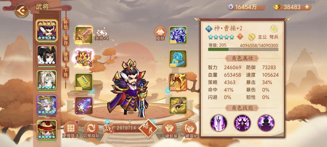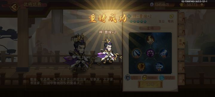 趁这次活动弄了一个重铸神曹操,星彩也10觉了五行界兔子刷了300多下,第10回合才过的,拿这个神通的时候,第1次伤害不够,第2次换成了月英先手,曹操忘记用女娲石了,不过最后20回合极限过了