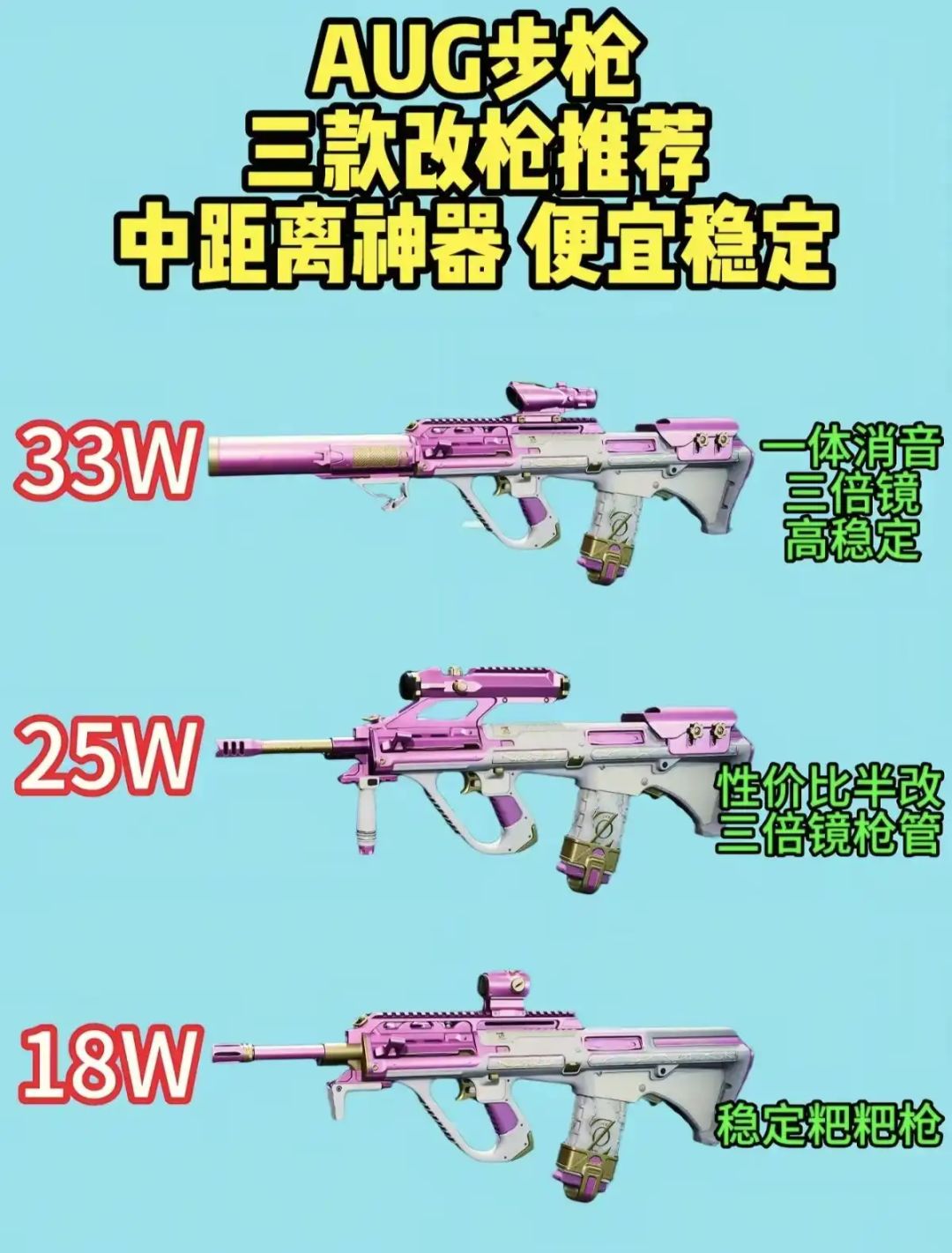 小编给大家整理了一下S8赛季AUG的改装方案,供大家参考。