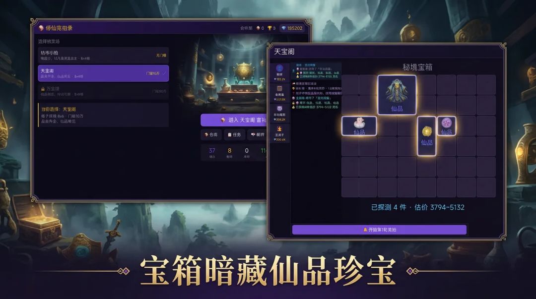 类开盲盒的竞拍游戏,引入了赝品机制,竞拍内容中包含真伪宝物,提升了鉴宝的博弈感与开盒趣味。玩家需要运用策略打压对手并且尽量低的价格拿下心仪的物品,过程中扮演的角色有不同的技能辅助鉴宝。Tap制造还原真实鉴宝的完整框架,将逻辑用于玩法中实现,其本身也不需要太过复杂的基建,形成优化后较有潜力的作品。